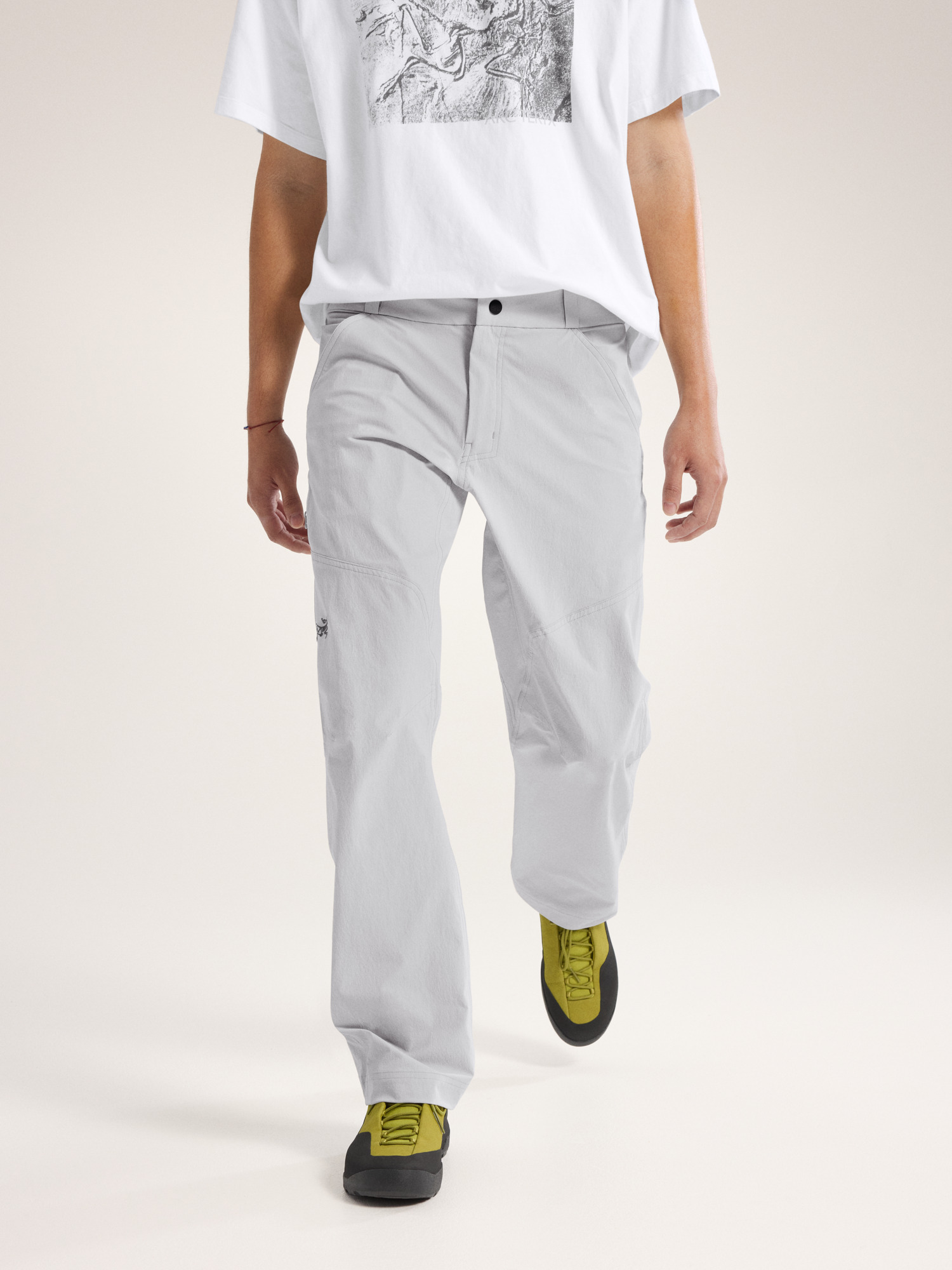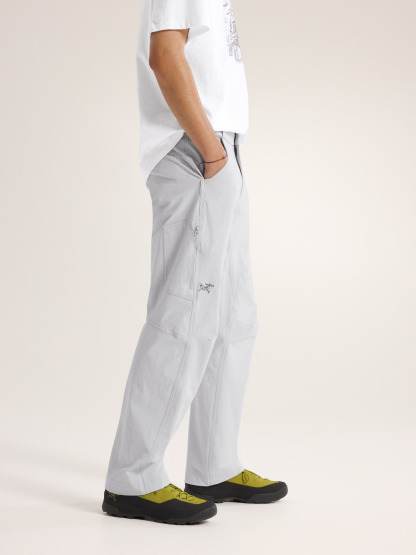 The Cronin loves to climb. Workwear inspired, and made from a heavyweight nylon plain weave, it combines durability and freedom of movement with a versatility that takes it beyond the crags. Its articulated patterning, gusseted crotch, and the fabric’s stretch work together to remove restriction on the rock. High-stress areas are reinforced with double-needle stitching, the waistband rides comfortably under a harness, and a durable water repellent treatment adds weather protection.