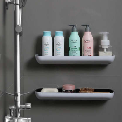 Useful Construction--Opened design with guardrail prevents items from falling. The base has drain holes prevents sewage from accumulating, and 4 small no-slip bumps which helps to hold items in place.