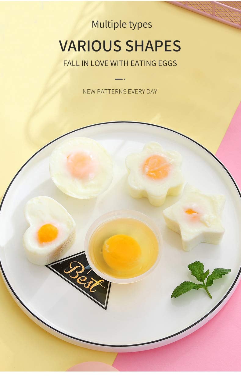 CUTE SHAPE:There are 4 different shapes. When the eggs are poured, they have different shapes that are small and cute. Enjoy the perfect poached egg every time with this poached egg mold. You can easily choose four poached eggs and eat them without any hassle.