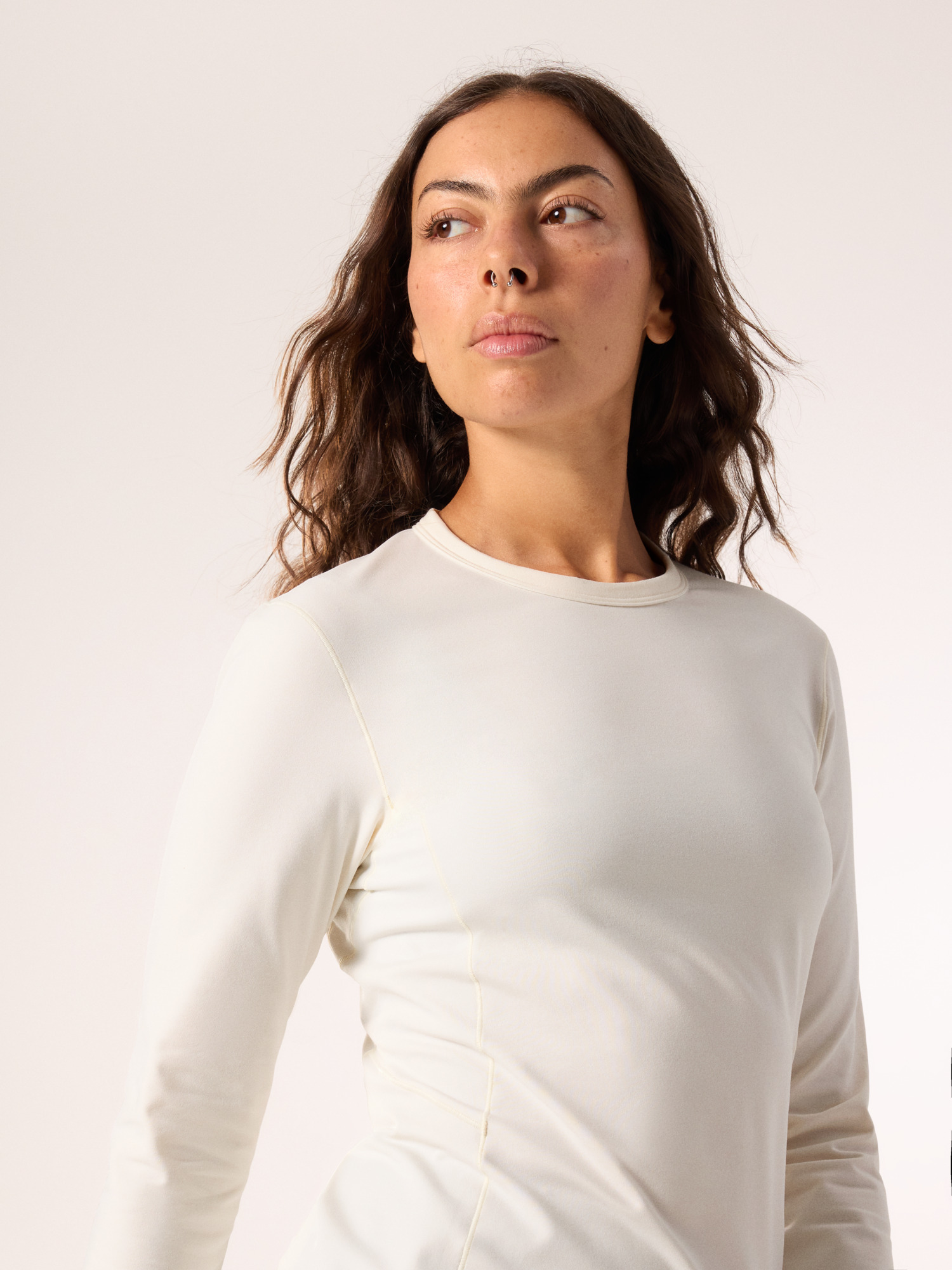 Low-profile crew neck is comfortable under layers